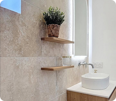 Du remplacement des revêtements au sol à la pose de faïences murales grand format, chaque élément est soigneusement sélectionné pour combiner esthétique, résistance à l’humidité et facilité d’entretien. En fonction de vos envies et de votre espace, nous réalisons également la mise en place de baignoire îlot, la rénovation de douches, la fermeture ou la création d’espaces WC, ainsi que tous types d’aménagements sur mesure.